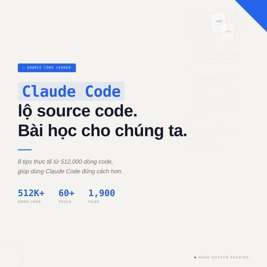 Hôm nay source code Claude Code bị lộ. Hơn 500,000 dòng TypeScript, toàn bộ kiến trúc bên trong.